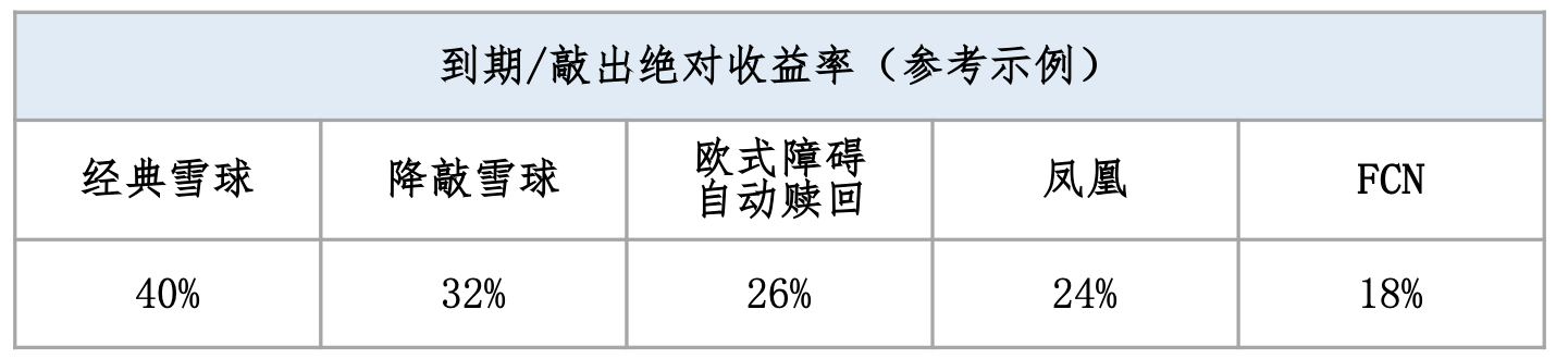 · 跌破敲入价格后,经典雪球没有其他收益,再敲出的难度也较大,其时点估值相比其他结构最低;
