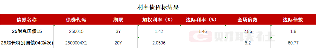 新债招标|财政部两期国债已招标结束 20年期特别国债中标利率2.0596%