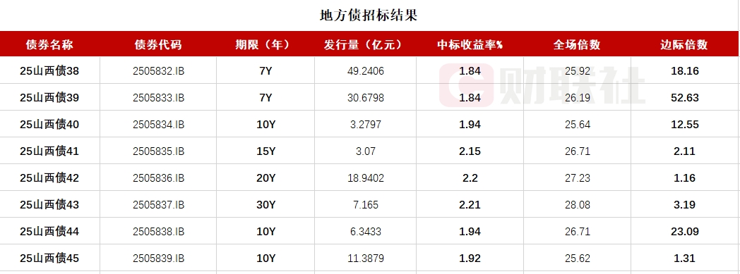 山西省八期地方债已结束招标 全场倍数均在25倍以上