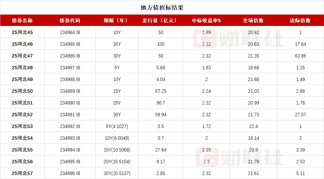 河北省政府十三期地方债已招标结束 投标倍数均在18倍之上