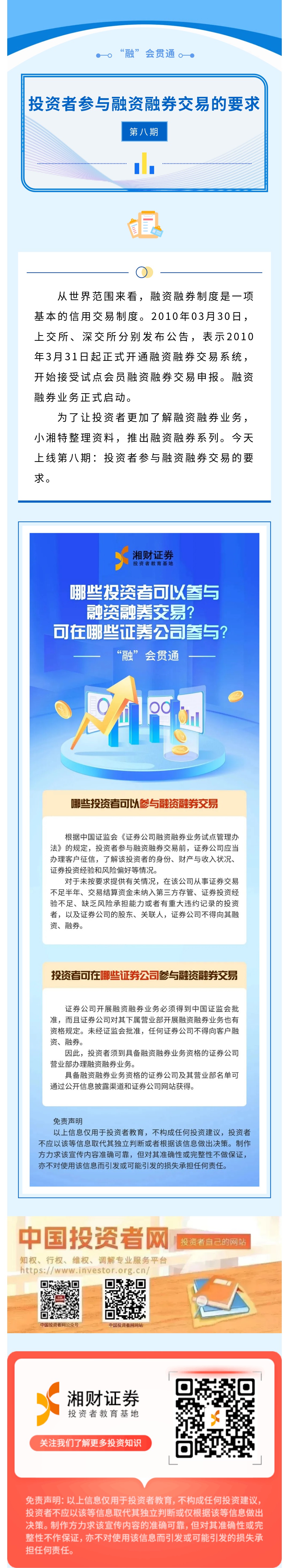 【理性投资伴我行 | “融”会贯通】投资者参与融资融券交易的要求