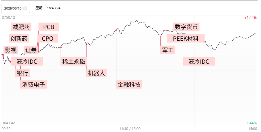 财联社8月19日电,上个交易日市场全天冲高回落,沪指创近10年新高,北证50创历史新高,深成指、创业板指均突破去年10月8日高点。个股涨多跌少,全市场超4000只个股上涨。沪深两市全天成交额2.76万亿,放量5196亿,成交额再创年内新高。1)GB200迭代至GB300系列渗透率显著提升的液冷服务器年内起量成为市场共识,相关成分股继续得到资金热捧,连板高标大元泵业在内的多股实现连板晋级,30厘米曙光数创、20厘米高澜股份、10厘米趋势龙淳中科技、英维克等核心标的继续强势涨停创出历史新高。2)8月17日,智元机器人通过官微公号宣布,智元全系列产品8月18日即将上线智元、京东商城。机器人概念活跃度依旧不减,祥明智能、晋拓股份、大豪科技等多股涨停,而作为本轮资金深度挖掘的轻量化方向则延续强势,铝镁合金概念股宝武镁业录得涨停,星源卓镁早盘一度涨超15%创出近2年新高,而PEEK材料概念午后也重新得到资金回流,中研股份等多股盘中再创历史新高。3)据灯塔专业版数据,截至8月18日,2025年暑期档总票房(含预售)突破100亿元。影视、短剧等多个传媒细分全天表现亮眼,华智数媒、华策影视、吉视传媒、慈文传媒等纷纷涨停,芒果超媒、百纳千成盘中也双双触及涨停。4)数据显示,自8月8日起,参与两融的客户数量已连续5个交易日保持增长态势,截至8月14日,已达到54.77万人。大金融板块延续上周火热表现,券商连板人气股长城证券实现晋级4连板,互联金融方向则表现更为火爆,指南针、同花顺、财富趋势连续第二个交易日涨超10%。此外北交所金融科技概念股国源科技、同辉信息等盘中也一度大幅冲高。