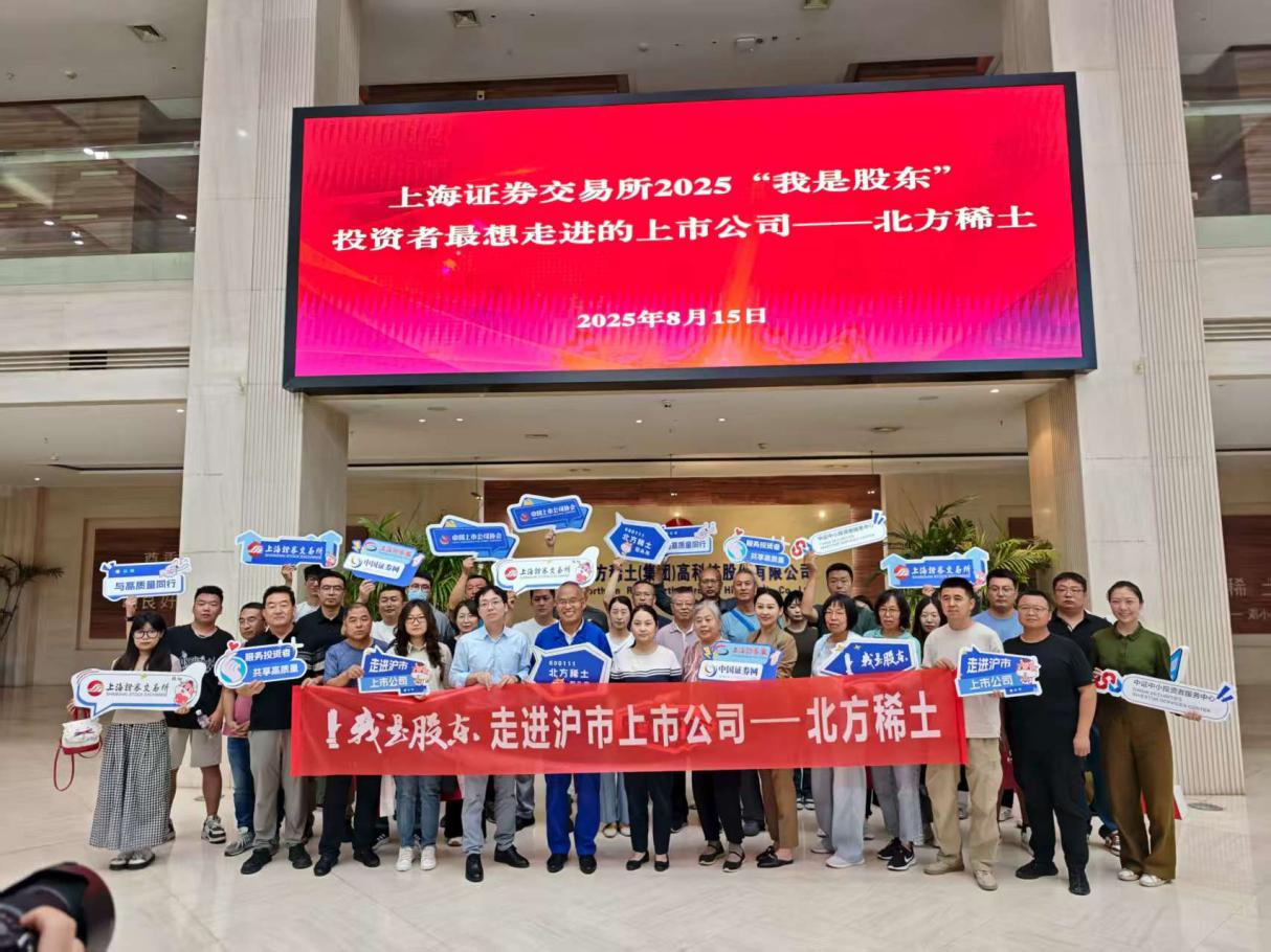为持续引导投资者深入认识上市公司投资价值,推动其树立股东意识与价值投资理念,2025年8月15日,“我是股东”走进沪市上市公司活动在内蒙古包头圆满举办。本次活动由上海证券交易所、中国上市公司协会、中证中小投资者服务中心联合主办,北方稀土、华林证券、上海证券报共同承办,50余名投资者积极参与其中。