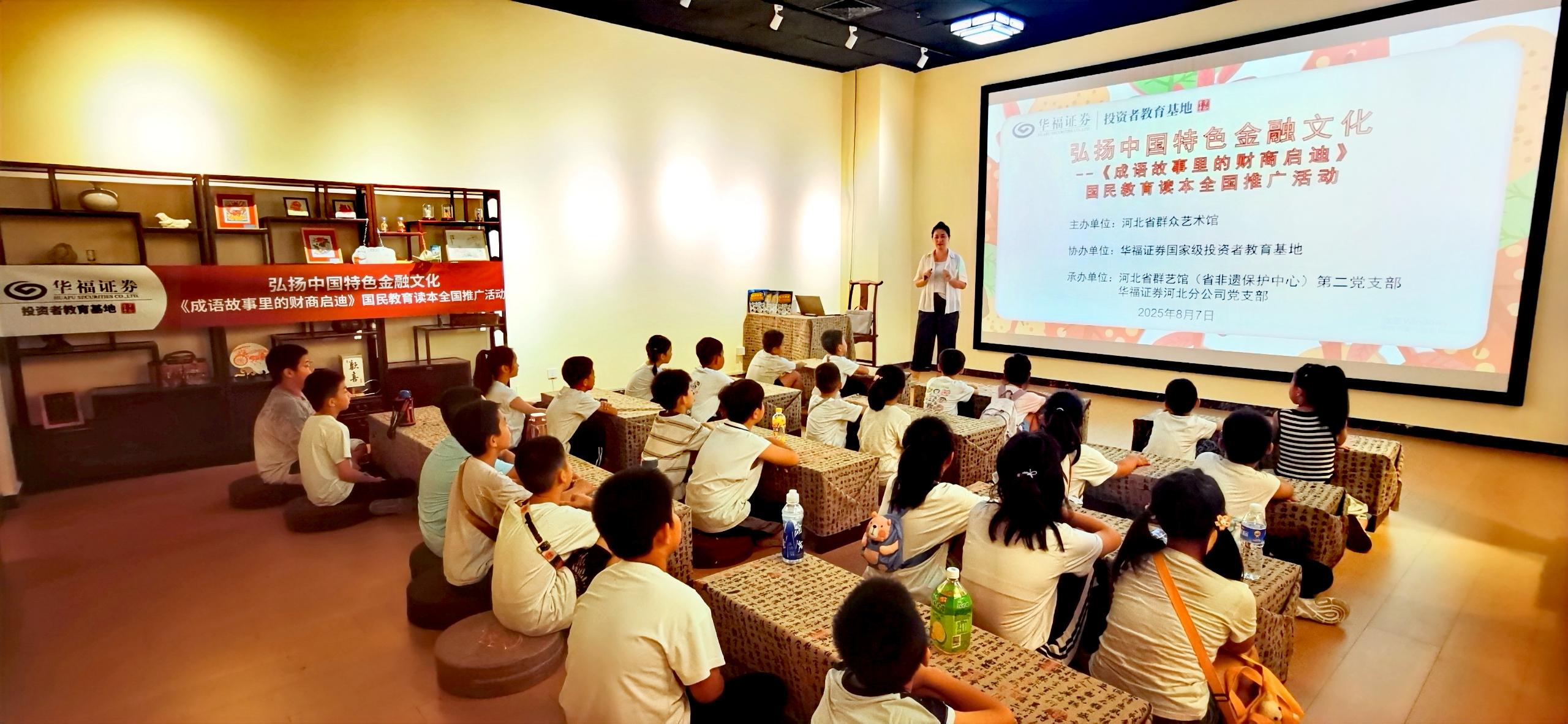 为积极响应进一步推进“投资者教育纳入国民教育体系”的要求,全面落实《成语故事里的财商启迪》读本推广工作,华福证券河北分公司积极探索创新模式,于2025年8月7日、8日联合河北省群众艺术馆成功为暑托班小学生量身打造了一场别开生面、寓教于乐的财商启蒙活动。