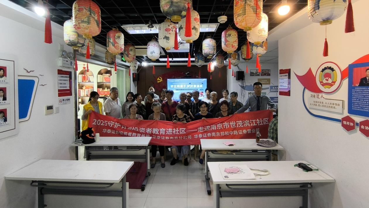 为推动投资者保护服务平等惠及中老年人,提高中老年投资者风险防范意识和自我保护能力,共同守护老百姓的“钱袋子”,华泰证券投教基地联合南京分公司及南京郑和中路证券营业部于8月14日开展防非教育宣传走进南京市世贸滨江社区专场活动,为社区居民带来了投保防非主题讲座。