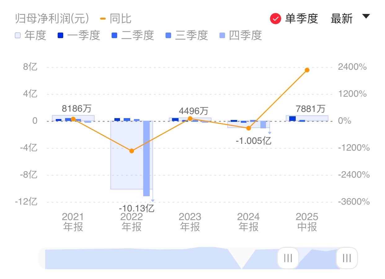 财联社8月25日电,拓维信息(002261.SZ)公告称,拓维信息发布2025年半年度报告,公司实现营业收入13.06亿元,同比下降24.42%;归属于上市公司股东的净利润为7880.59万元,同比增长2262.83%。公司未派发现金红利,不送红股,不以公积金转增股本。小财注:Q1净利6535万元,据此计算,Q2净利1346万元,环比下降79.40%。
