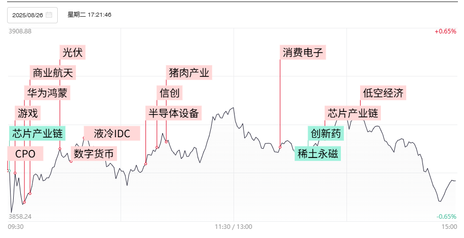 财联社8月27日电,上个交易日市场全天震荡调整,三大指数涨跌不一。个股涨多跌少,全市场超2800只个股上涨。沪深两市全天成交额2.68万亿,较前日缩量4621亿。1)华为云日前宣布调整组织架构,表示在智能算力云的赛道上,将投入更多的资源。华为产业链受此消息提振再度逆势拉升,昇腾、鸿蒙概念表现突出,华胜天成、拓维信息、君逸数码涨停,润和软件、常山北明、诚迈科技等早盘也一度大面积冲高。但除去上述几只板块内核心票封板外,其余大部分个股从日内高点不同程度展开回落。2)苹果公司计划从今年9月发布的iPhone 17系列开始,开启一个为期三年的重大外观革新周期。消费电子板块赚钱效应持续释放,叠加液冷、机器人概念的趋势人气龙头领益智造缩量实现连板晋级,总市值历史首度站上1000亿,午后歌尔股份的涨停带动立讯精密、蓝思科技等果链核心大票展开批量加速。3)DeepSeek正式发布了新模型V3.1,其中包括更强的Agent能力,被称为“迈向智能体时代的第一步”。AI智能体、信创、游戏等应用端方向盘中均有不俗表现,三七互娱、利欧股份、能科科技涨停,海天瑞声大涨近15%。4)8月25日召开的国务院常务会议提出"加快设备更新改造",直接利好化工等资本密集型行业,化工板块全天逆势活跃,中核钛白、云图控股、亚星化学等多股涨停,鲁西化工、江山股份、中化国际等多股涨幅靠前。