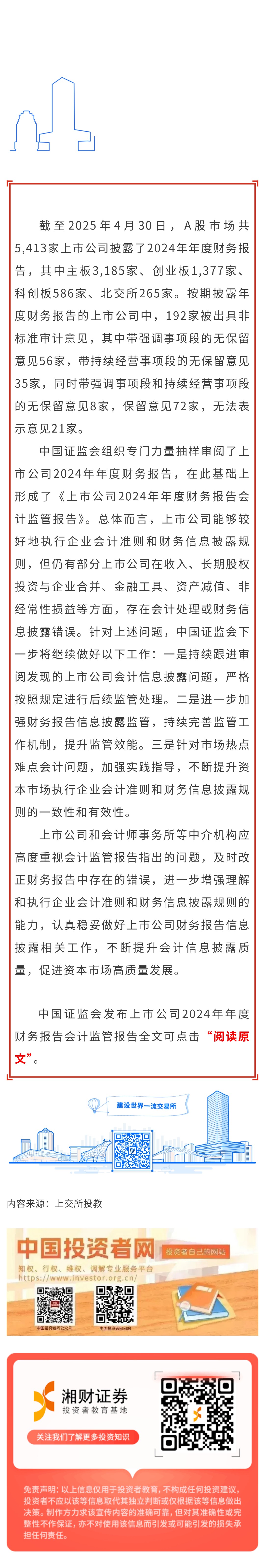 【深交所投教】中国证监会发布上市公司2024年年度财务报告会计监管报告