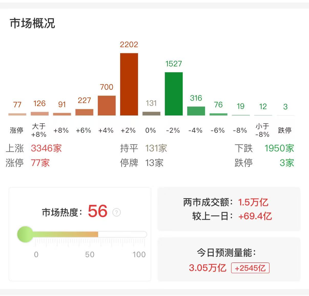 沪深两市成交额突破1.5万亿 预计全天成交超3万亿