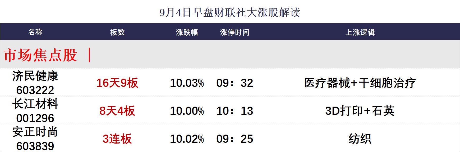 9月4日午间涨停分析