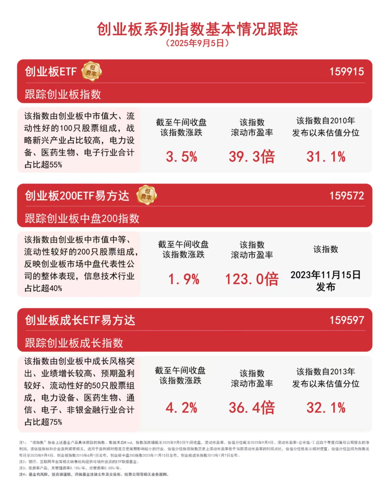 截至午间收盘,创业板成长指数上涨4.2%,创业板指数上涨3.5%,创业板中盘200指数上涨1.9%,创业板ETF(159915)半日成交额近50亿元,居深市ETF第一。