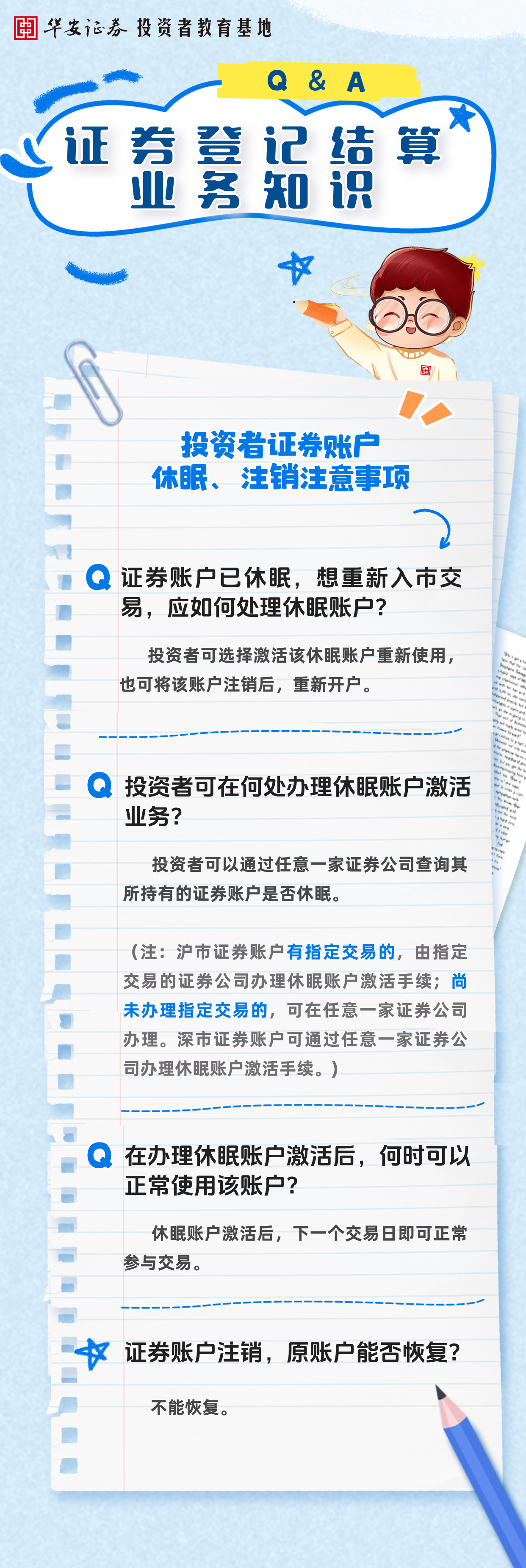 华小安惠学习 | 证券登记结算业务知识:投资者证券账户休眠、注销注意事项