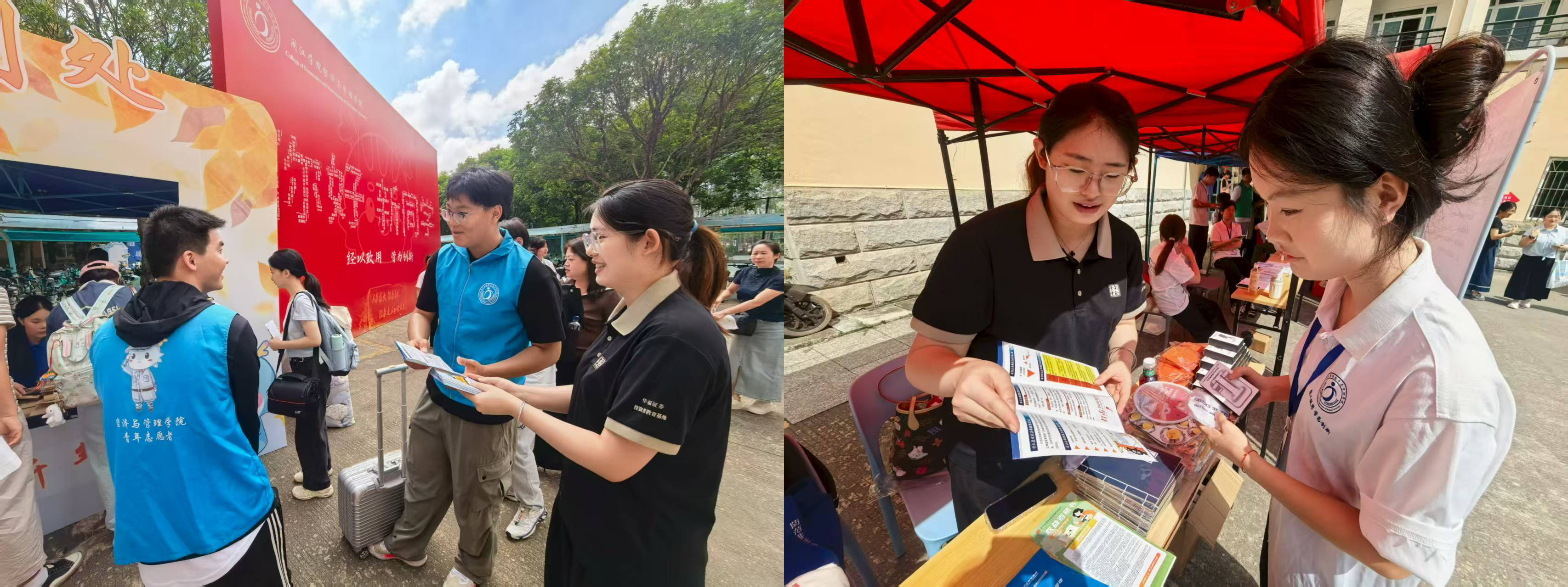 在迎新帐篷的宣传专区,华福证券投教团队精心准备的参与互动问答获得的防非反诈宣传品成为新生报到的“热门伴手礼”。活动聚焦校园高发的“虚假投资App”“AI换脸仿冒客服”“内幕消息诱导炒股”等新型诈骗手段,以问答形式向同学们宣导防非防骗知识。