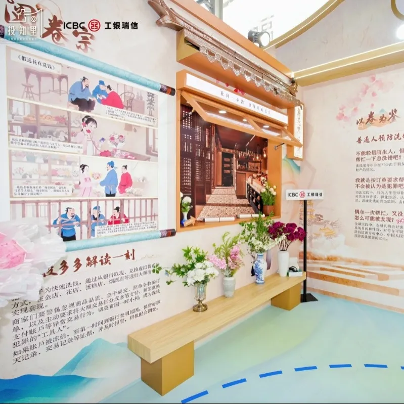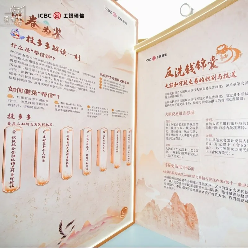 “正‘钱’方”展彻底颠覆传统金融科普的单向输出模式,以“助力黎明镇重振辉煌”为全景故事脉络,将神秘卷宗化为解谜关键,把整个展台打造成层层递进的迷宫场景,精心设置爆单疑云、帮信暗流、金融迷雾、直播幻境四大核心关卡。参与者不再是“旁观者”,而是深度“代入”反洗钱守护者角色——在破解真实改编的洗钱案件时,沉浸式学习客户尽职调查、可疑交易监测等专业知识。从案例推理时的“灵光一闪”,到知识觉醒后的“豁然贯通”,再到闯关成功时的“成就感爆棚”,全景式体验让反洗钱知识变得可触摸、可操作、可记忆,真正实现“玩一次就懂,用的时候能信手拈来”。