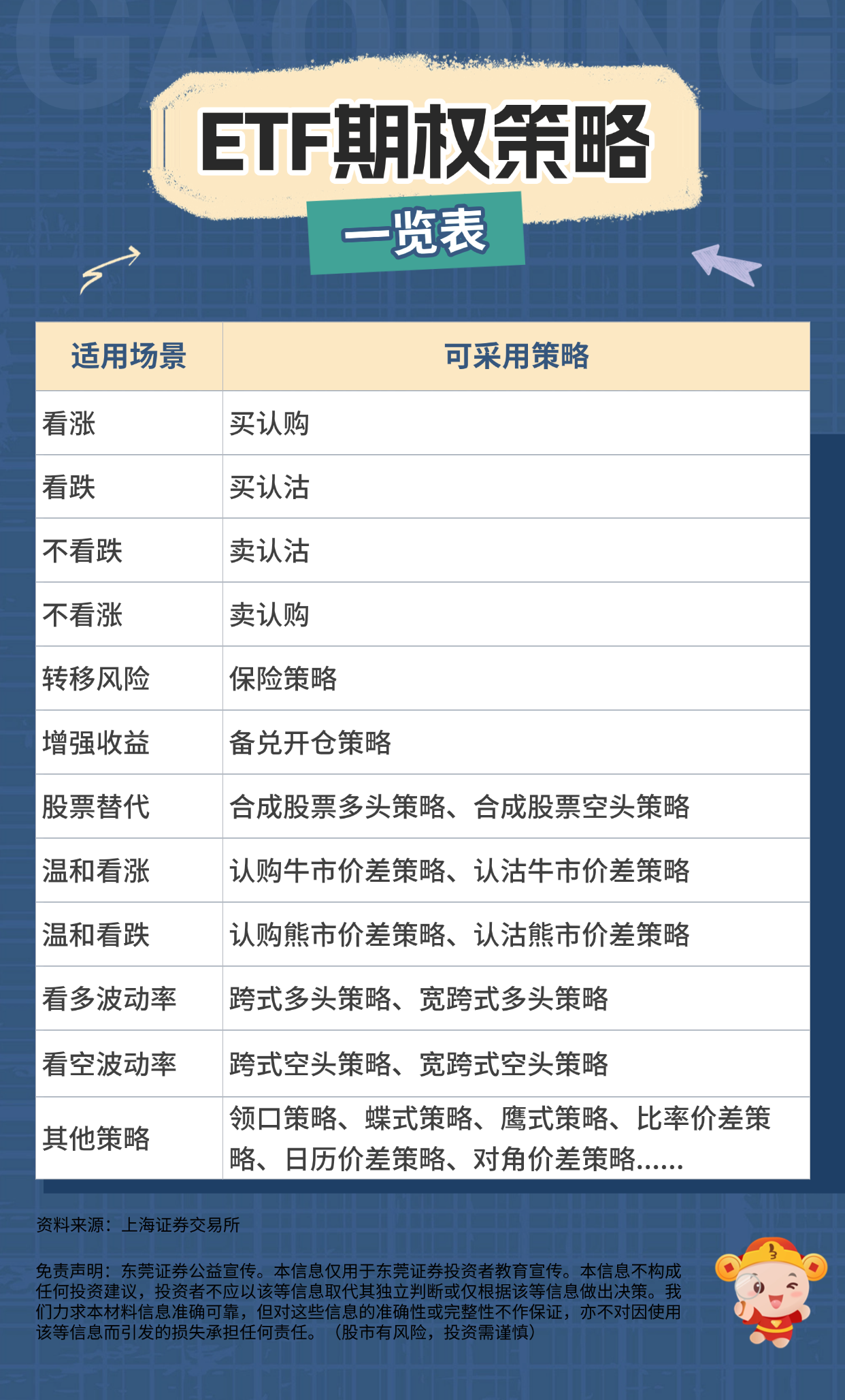 【金融教育宣传月】东证投教图说|ETF期权策略一览表