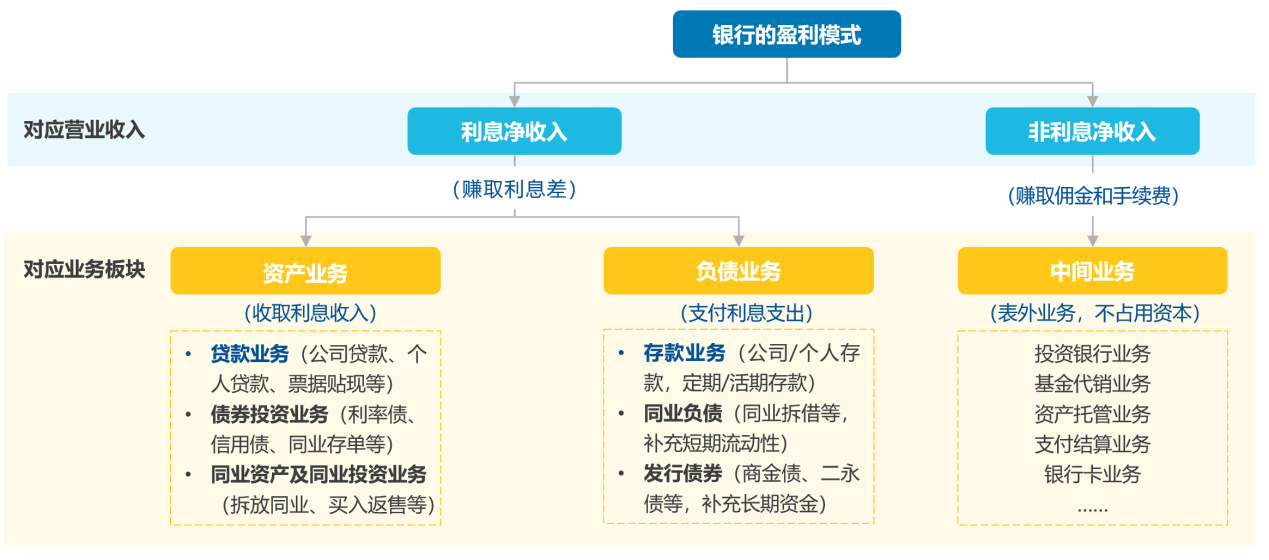 资产负债驱动赚取息差,中间业务作为补充
