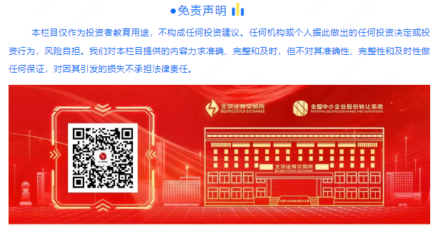 【免责声明】本文转载自北交所 新三板投教微信公众号。华泰证券力求所涉信息资料准确可靠,但华泰证券不对该等信息的真实性、准确性、完整性、原创性、及时性作任何保证。所有资料及图表仅供学习交流,不代表华泰证券任何观点,不构成任何投资建议,也不对投资收益进行任何保证和承诺,请不要单独依靠本内容的信息而取代自身独立的判断,华泰证券亦不对因使用此资料的信息而导致的损失承担任何责任。市场有风险,投资需谨慎!