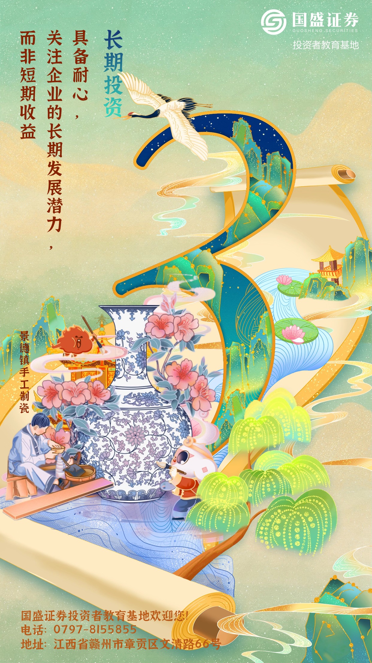 系列海报以“践行三投资理念”为主题,以古韵今风为引,倡导以理性投资为基、长期投资为径、价值投资为锚,三者相辅相成,助投资者以智慧之眼洞察市场,于古色古香间参透投资精髓,开启稳健投资新篇章。