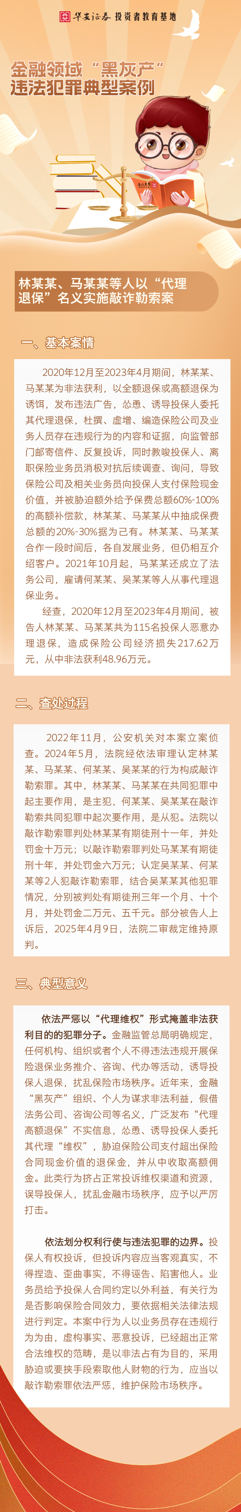 【金融教育宣传周】以案说法 | 金融领域“黑灰产”违法犯罪典型案例:林某某、马某某等人以“代理退保”名义实施敲诈勒索案