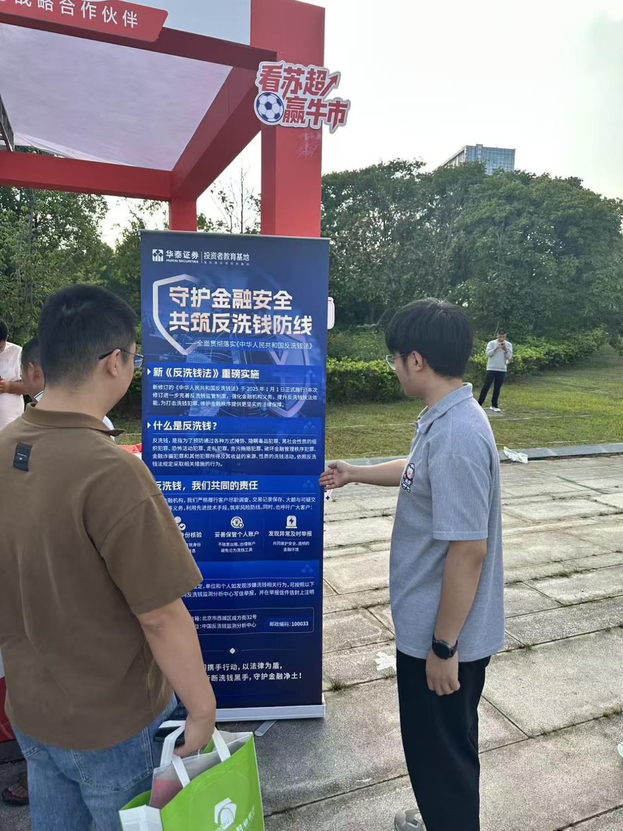 此次宿迁奥体中心宣传活动成功地将体育赛事的高人气与金融知识普及的有效性相结合,进一步展现我司主动贴近客户、积极守护群众“钱袋子”的社会责任感,更切实地将反洗钱意识和理性投资理念传递给了广大市民,为营造健康、稳定、有序的金融环境贡献力量。未来,将继续探索此类跨界合作模式,持续深化投资者教育和金融安全宣传工作。