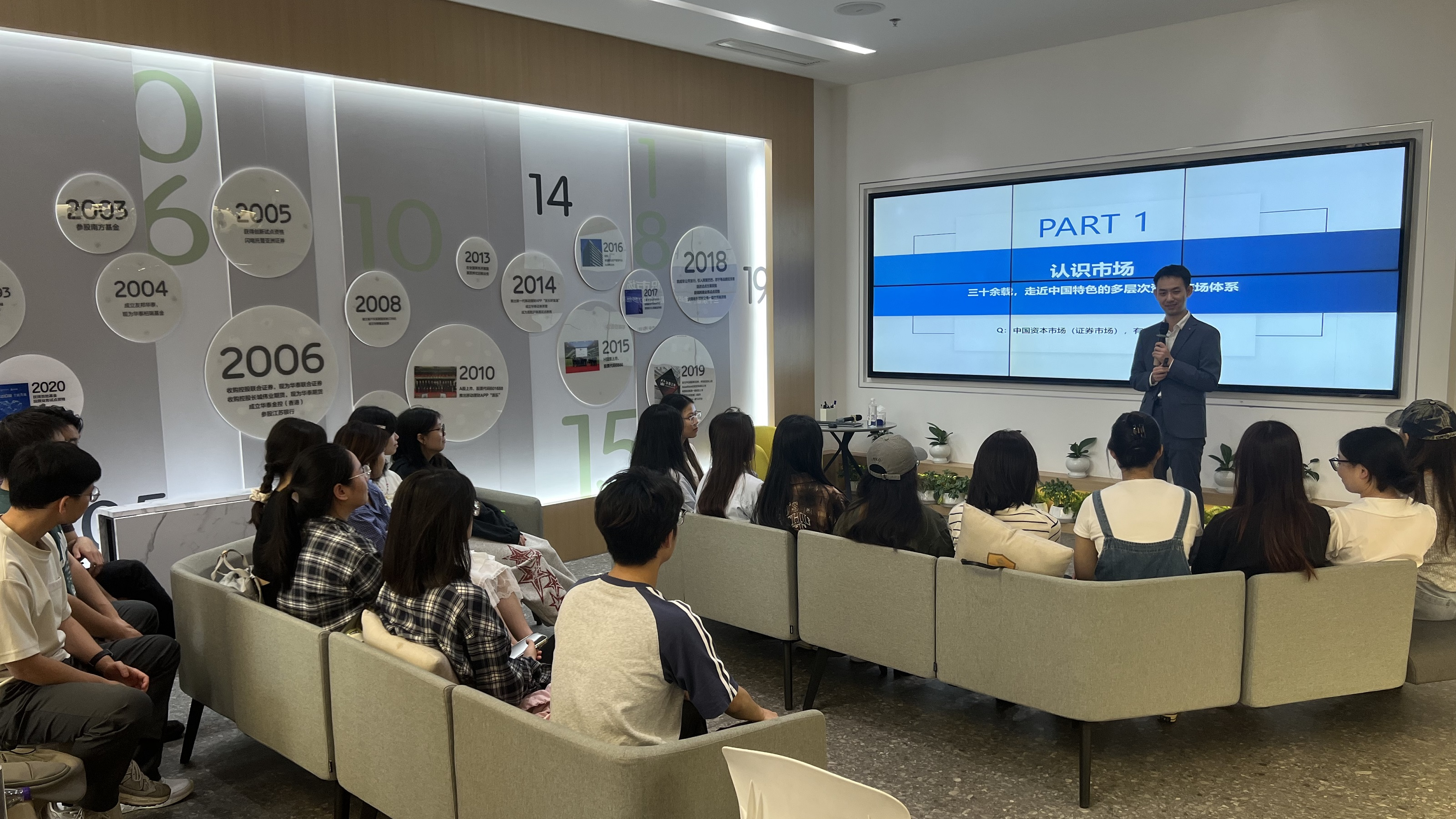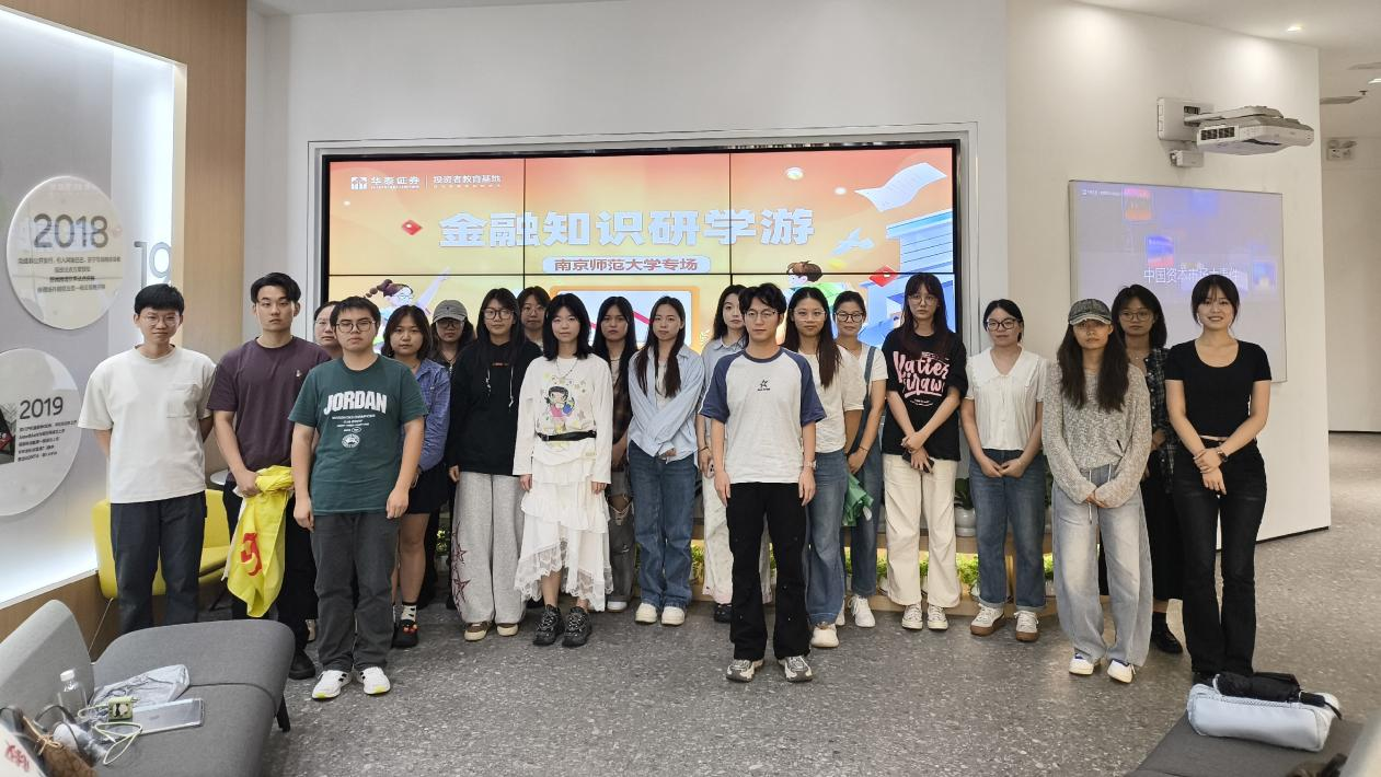 为深入贯彻落实“投资者教育纳入国民教育体系工程”,在南京市委金融办,南京团市委的指导下,华泰证券投资者教育基地精准聚焦青年群体的金融知识和职业素养教育,为南京师范大学20余名同学开展了金融知识研学游-青柠实践实境课堂专场活动,带领同学们了解金融市场,走近证券行业,增强防范非法金融的意识。活动于2025年9月26日在华泰证券投资者教育基地举办。