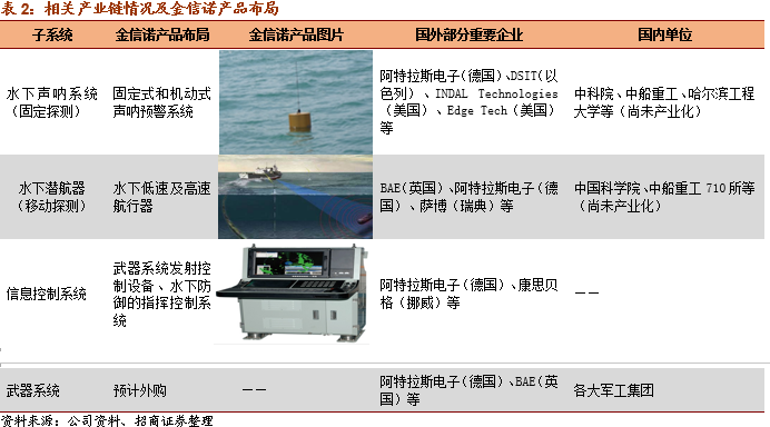 【金信诺(300252)水下防御优质标的】,自2015年11月长沙金信诺防务技术有限公司成立以来,公司与行业科技带头人合作,积极布局水下防御系统,水下综合防御系统产品研发已取得实质进展,其中声纳探测与指挥控制两个核心子系统已完成数值及实验室半实物仿真,重要部件研制了样机并通过了实验室、湖试,以及海试的验证。在相关产业链的布局上,产品涵盖固定式和机动式声呐预警系统、水下低速及高速航行器、武器系统发射控制设备以及水下防御的指挥控制系统,水下综合防御系统已经取得实质进展。明年预计将是相关产品设备研发是取得突破的重要时间,面向国内国际市场空间巨大。