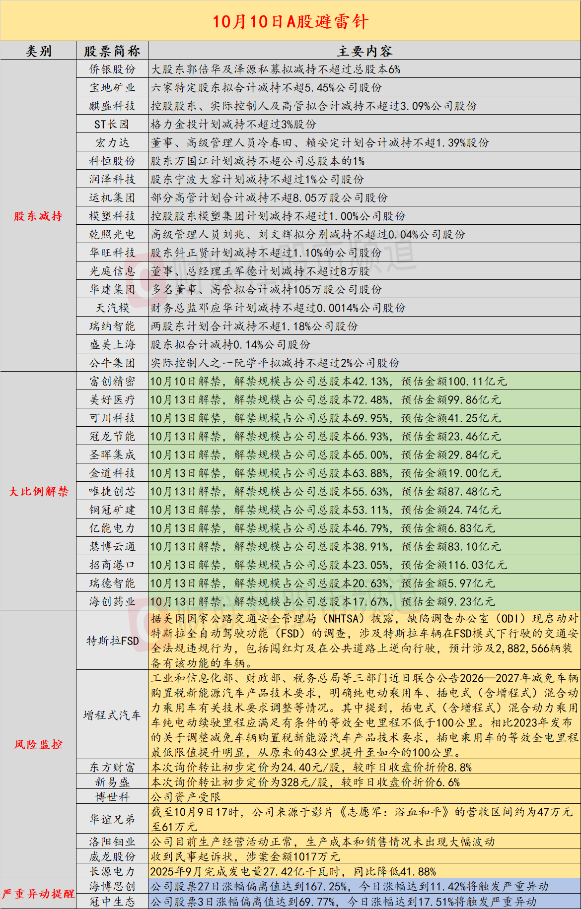 昨日公告的A股拟减持的公司数量较之前有所增多,侨银股份大股东郭倍华及泽源私募拟减持不超过总股本6%,宝地矿业六家特定股东拟合计减持不超5.45%公司股份;富创精密、美好医疗将迎来超四成以上解禁;中芯国际、佰维存储两融折算率均调为零;东方财富本次询价转让初步定价为24.40元/股,较昨日收盘价折价8.8%;工信部等三部门调整2026—2027年减免车辆购置税新能源汽车产品技术要求;新易盛本次询价转让初步定价为328元/股,较昨日收盘价折价6.6%;美股三大指数集体收跌,热门科技股普涨跌不一。