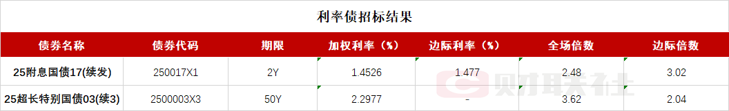 新债招标|财政部两期国债已招标结束 50年超长期特别国债中标利率2.2977%
