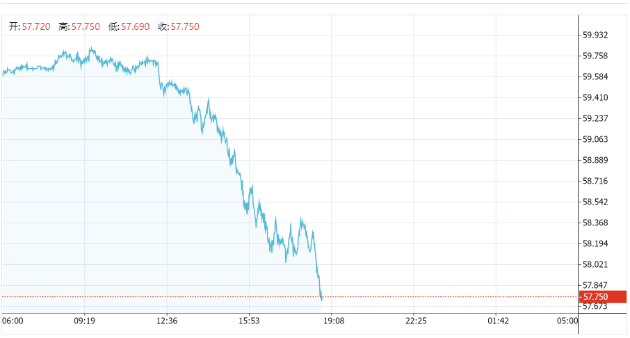 财联社10月14日电,国际原油日内持续下行,WTI原油跌3%,报57.328美元/桶,创5月8日以来新低;布伦特原油跌2.80%,报61.547美元/桶。