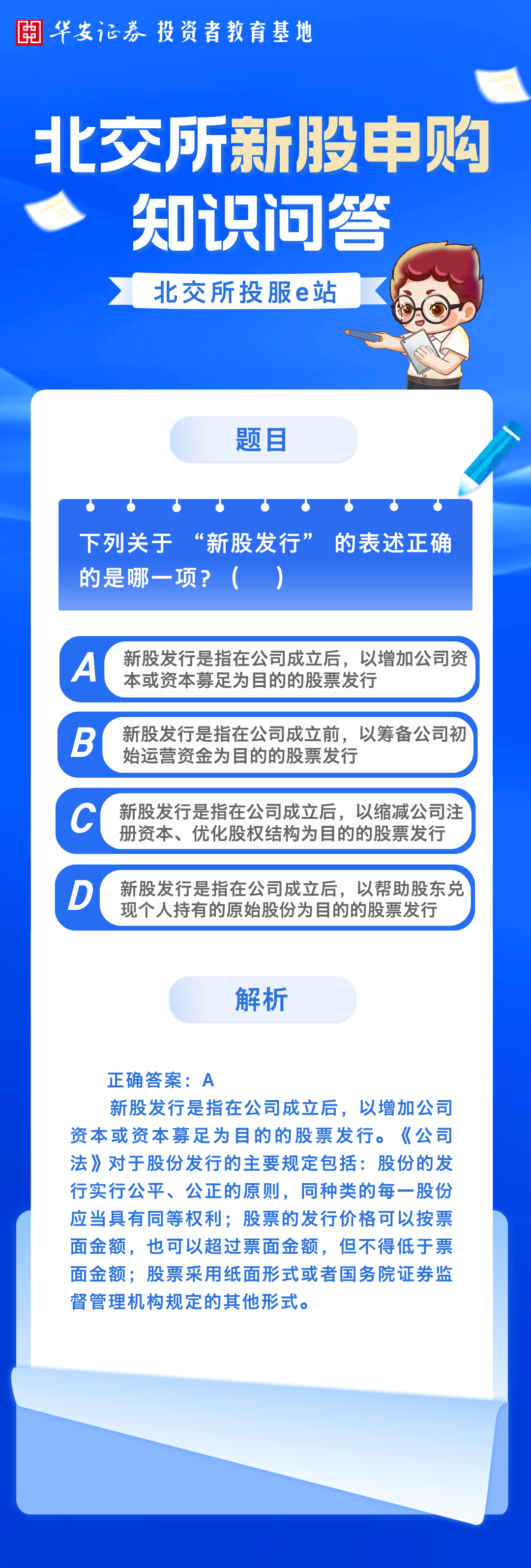 北交所投服e站 | 北交所新股申购知识问答:关于 “新股发行”的表述正确的是哪一项?