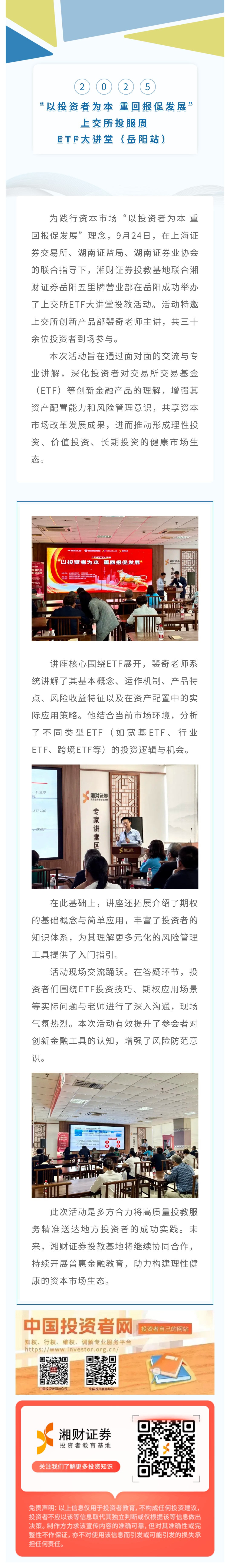 【投教活动】“以投资者为本 重汇报促发展”上交所投服周——ETF大讲堂(岳阳站)活动成功举办