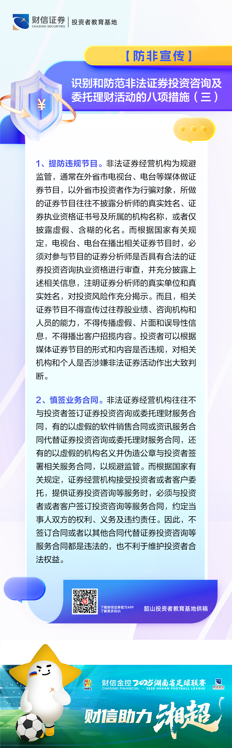 【免责声明:本栏目仅为投资者教育目的而发布,不构成任何投资建议。投资者不应以该等信息取代其独立判断或仅根据该等信息做出决策。财信证券投教基地力求所涉信息准确可靠,但对这些信息的准确性、完整性和及时性不作保证,亦不对因使用该等信息而引发的损失承担任何责任。】