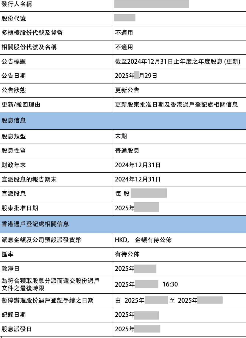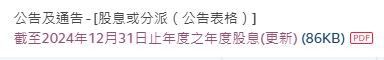 通过第67集介绍过的“披露易”网站,输入HKXX的股票代码,找到HKXX公司在2025年某月29日的发布的“截至2024年12月31日止年度之年度股息”公告,如图所示: