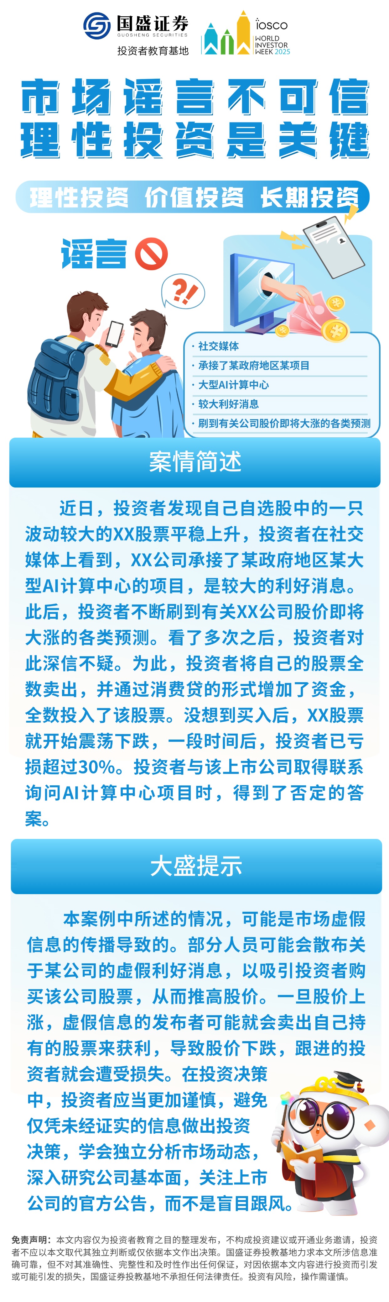 国盛证券投资者教育基地推出该系列图文,聚焦维权骗局与市场谣言两大关键问题,通过生动案例与专业提示,提醒广大投资者保持警惕,理性投资,增强风险意识,提升识别能力,守护好自己的钱袋子,做明智的投资决策者。下面,一起来学习吧~