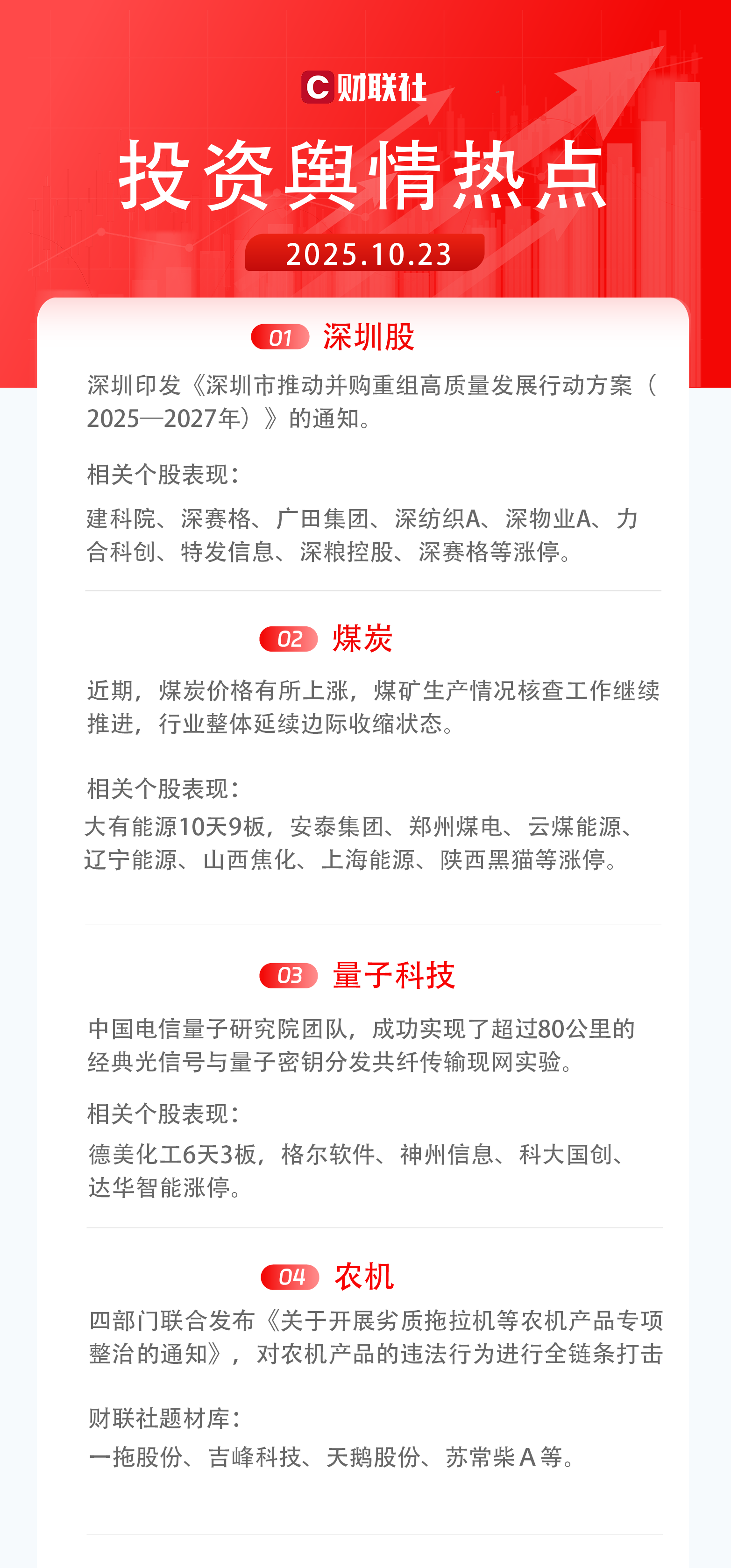 1)深圳股:深圳印发《深圳市推动并购重组高质量发展行动方案(2025—2027年)》的通知。
