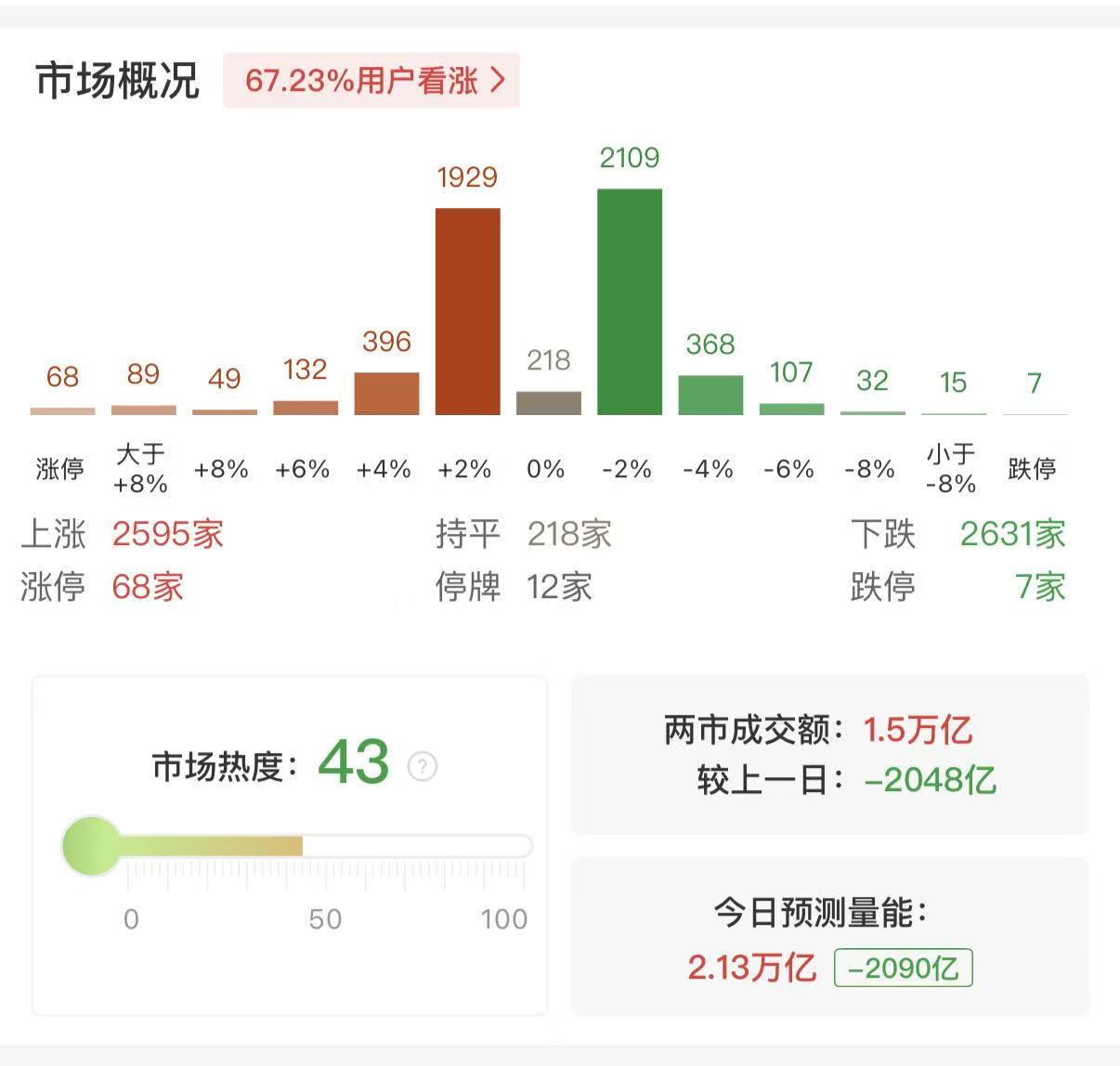 沪深两市成交额突破1.5万亿 较昨日此时缩量超2000亿