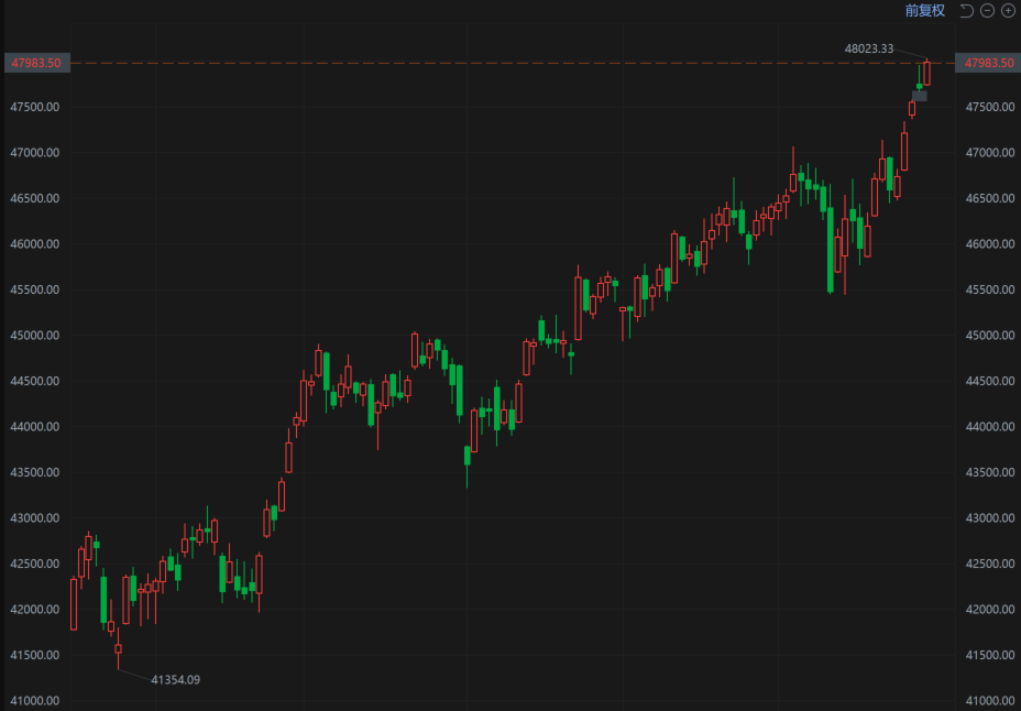道琼斯指数首次触及48000点