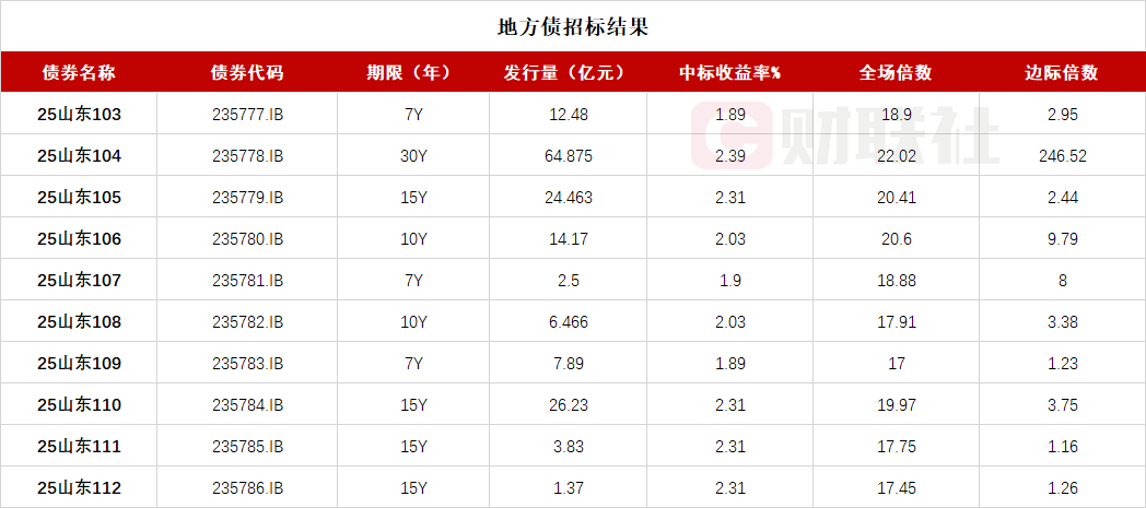 山东省政府十期地方债已招标结束 投标倍数均在17倍之上