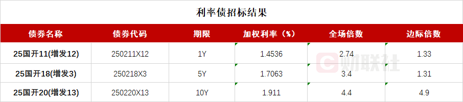 国开行三期金融债已结束招标 1年期品种中标收益率1.4536%