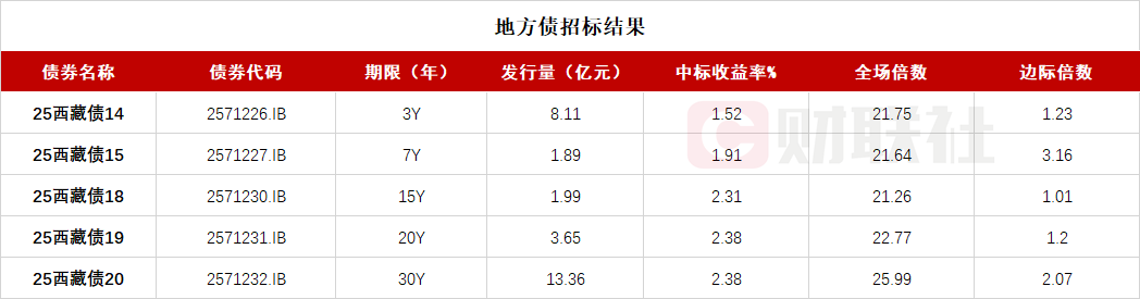 西藏自治区政府五期地方债已招标结束 投标倍数均在21倍之上