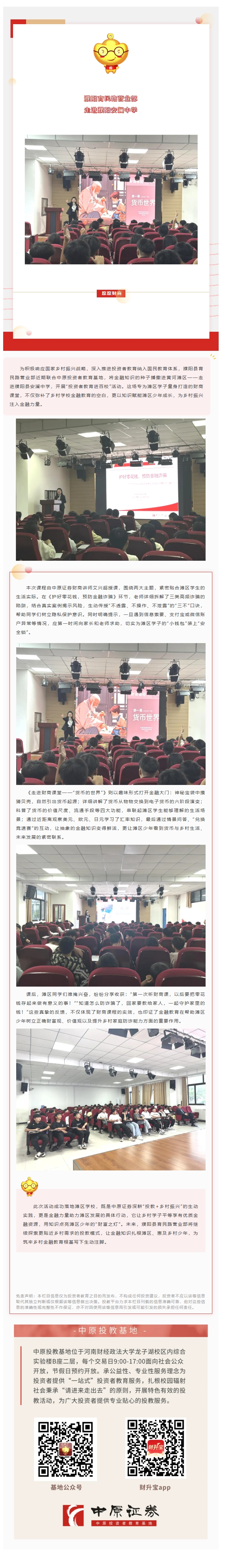 理性投资伴我行 | 点亮黄河滩区少年的“财富之灯” —中原证券濮阳育民路营业部走进濮阳安澜中学开展投资者教育进百校活动