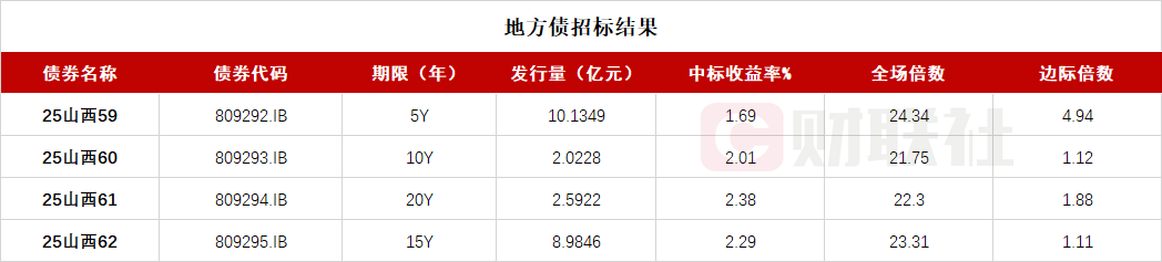 山西省政府四期地方债已招标结束 投标倍数均在21倍之上