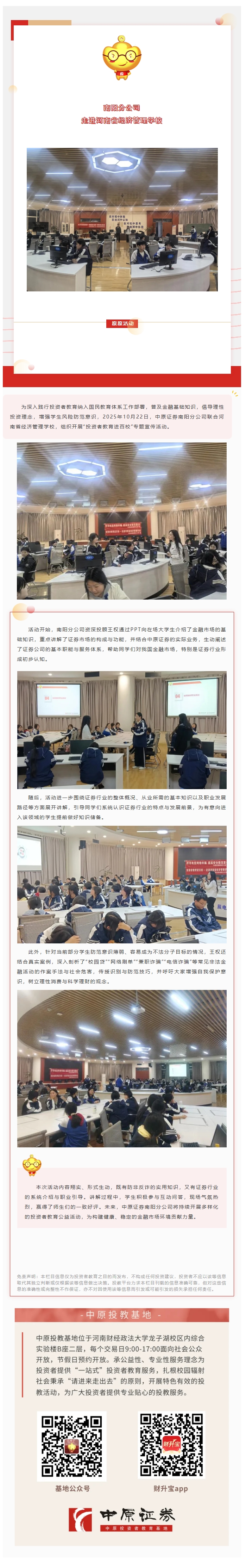 理性投资伴我行 | 中原证券南阳分公司投资者教育进百校—走进河南省经济管理学校