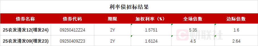 农发行两期金融债已结束招标 2年期品种25农发清发09(增发23)中标收益率1.6124%