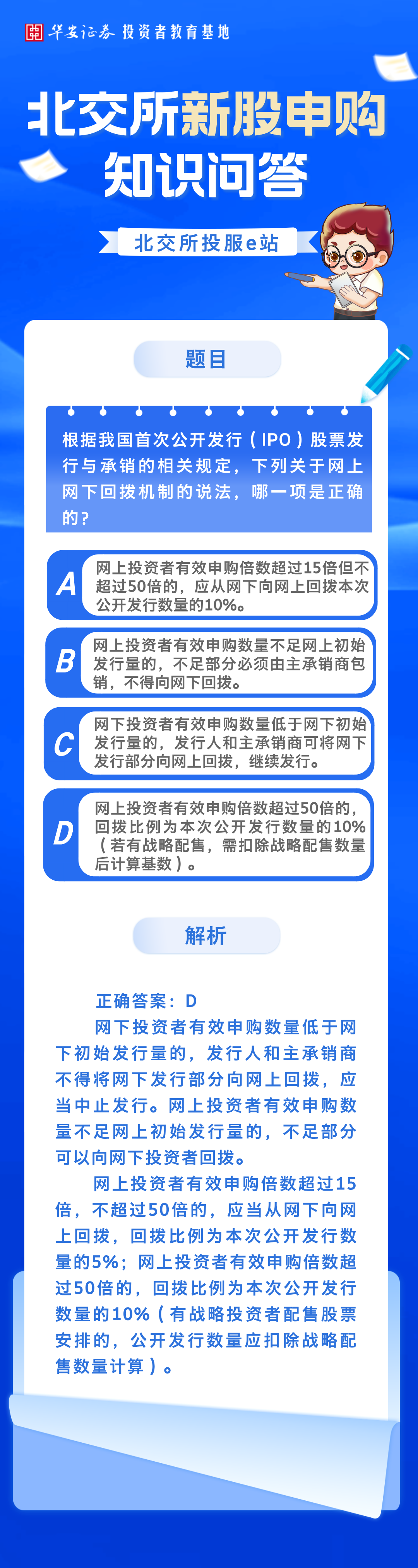 北交所投服e站 | 北交所新股申购知识问答:关于网上网下回拨机制的说法,描述正确的是?