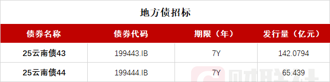 云南省政府将于14:00-14:40招标发行两期地方债 期限7Y