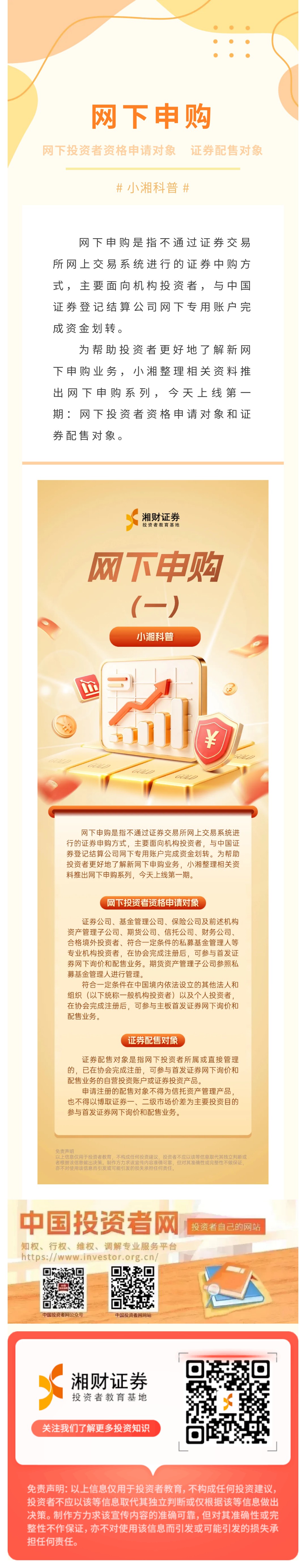 【小湘科普 | 网下申购】网下投资者资格申请对象和证券配售对象有哪些