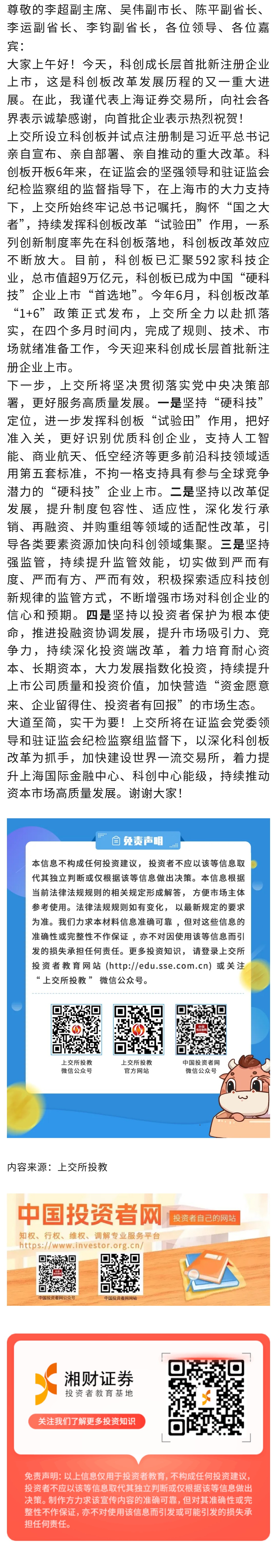 【上交所投教 | 上交所发布】上海证券交易所理事长邱勇在科创板科创成长层首批新注册企业上市仪式上的致辞