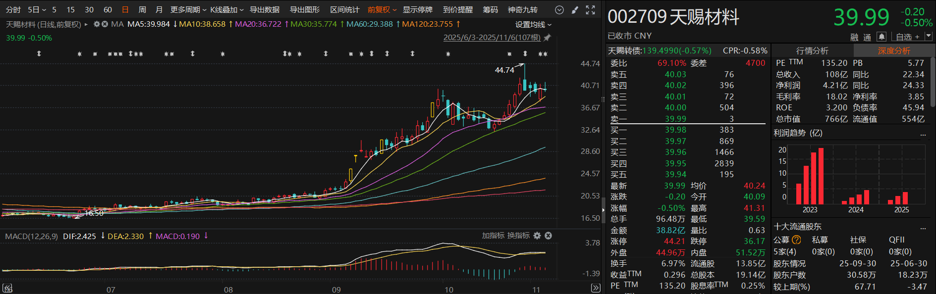 财联社11月6日电,天赐材料(002709.SZ)公告称,公司全资子公司九江天赐与国轩高科签订《年度采购合同》,国轩高科2026-2028年度向九江天赐采购预计总量为87万吨的电解液产品。该协议为框架性协议,实际采购量以经双方确认的《采购订单》为准,可能存在一定的不确定性。如协议履行过程中遇不可预计或不可抗力因素,可能存在协议无法如期或全部履行的风险。此协议的签订预计将对公司2026年至2028年度经营业绩产生积极影响。