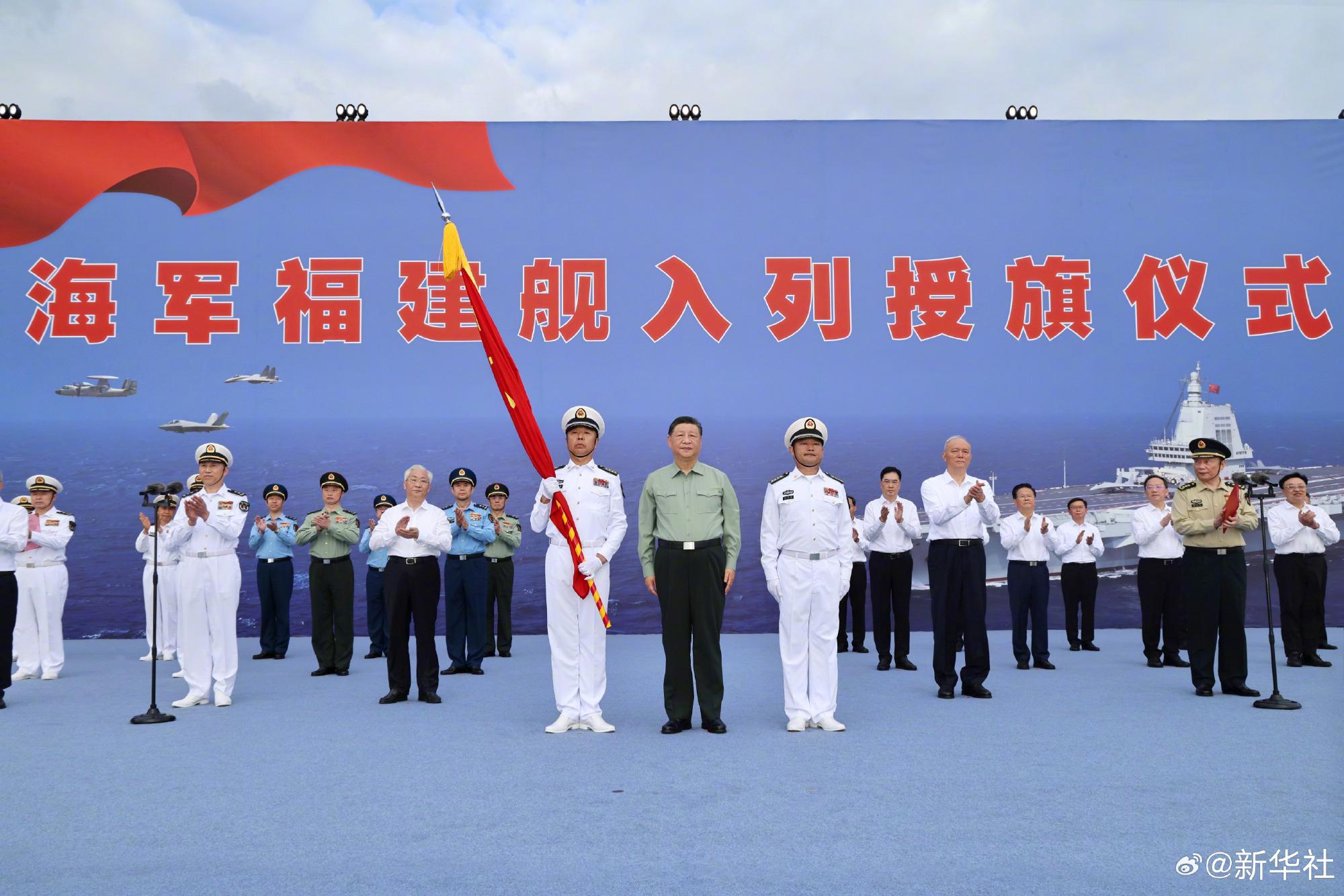 蔡奇、张国清出席福建舰入列授旗仪式。张升民主持仪式。